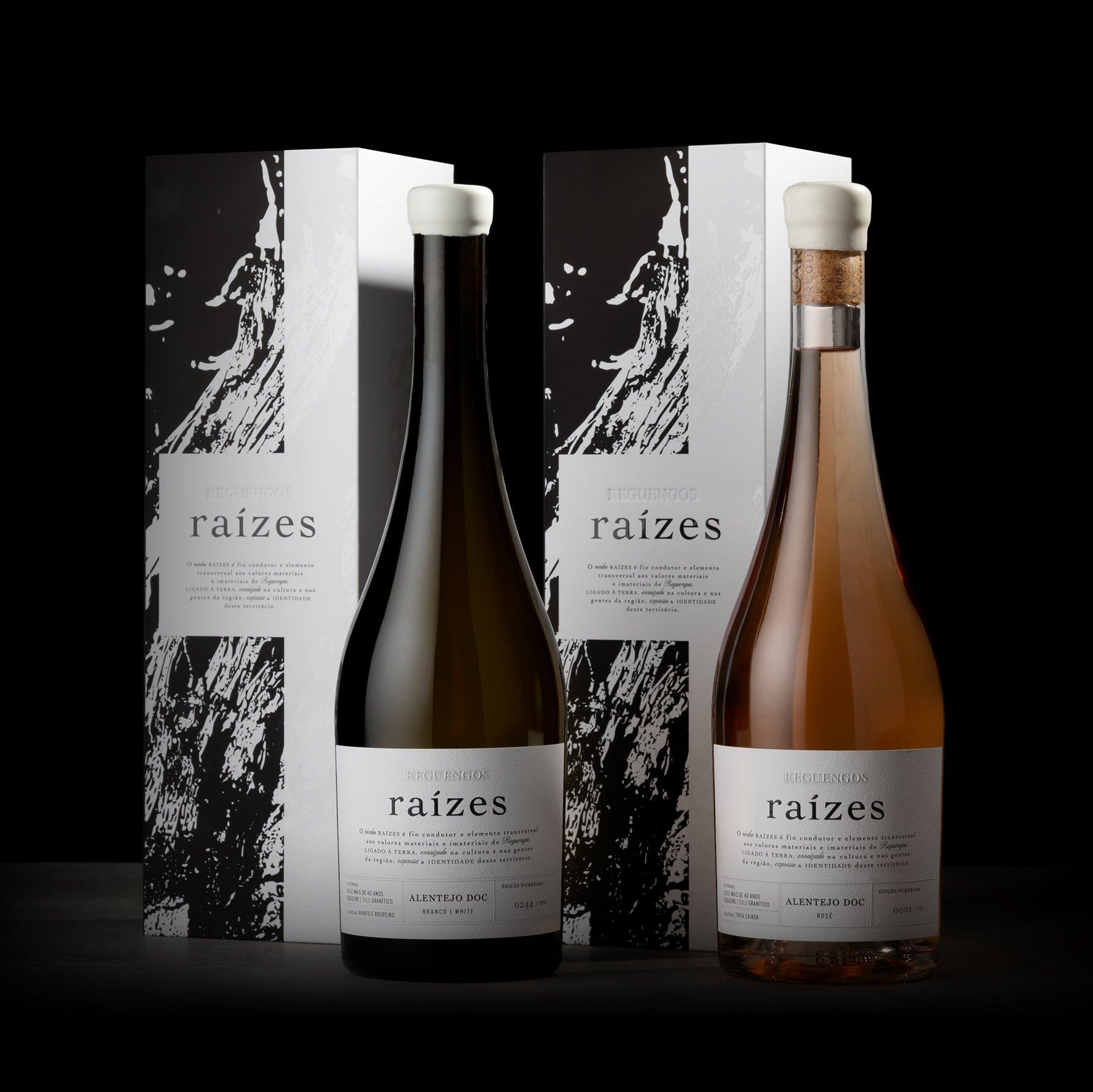 As castas Arinto e Roupeiro vieram da Vinha do Monte Novo, plantada em 1979 em solo granítico franco-arenoso, com exposição Este-Oeste. O vinho resulta exclusivamente de mosto lágrima, fermentado em barricas de carvalho francês de 3.º uso, onde estagiou durante 9 meses, ganhando complexidade, textura e profundidade. O Reguengos Raízes branco de 2024 tem produção limitada de apenas 1.890 garrafas.
